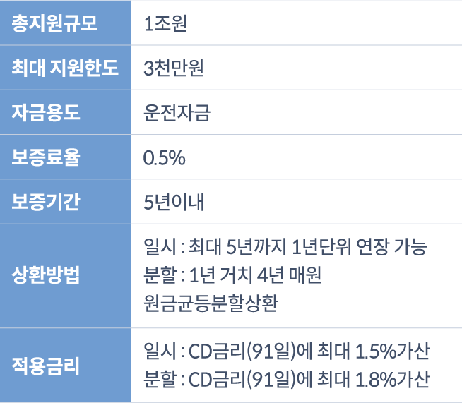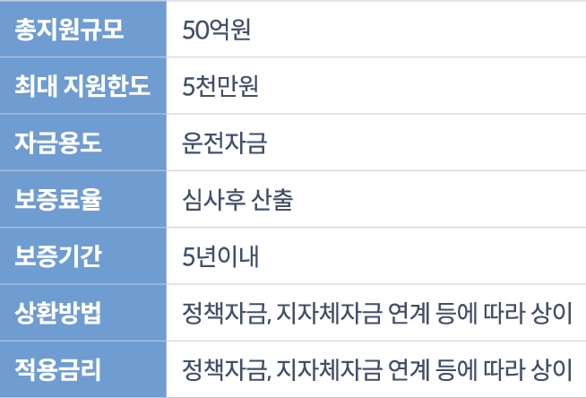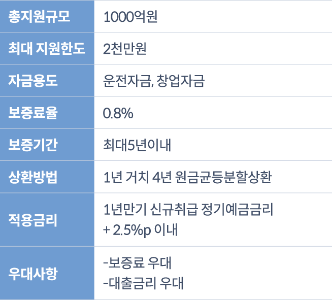 1.업력 5년 이내 2.저신용(신용평점 744점 이하) 3.저소득(연매출 80백만원 이하, 연소득 35백만원이하, 기초생활수급자 및 차상위계층) 신청 기한 - 한도 소진시 까지 신청 기관 - 전남신용보증재단